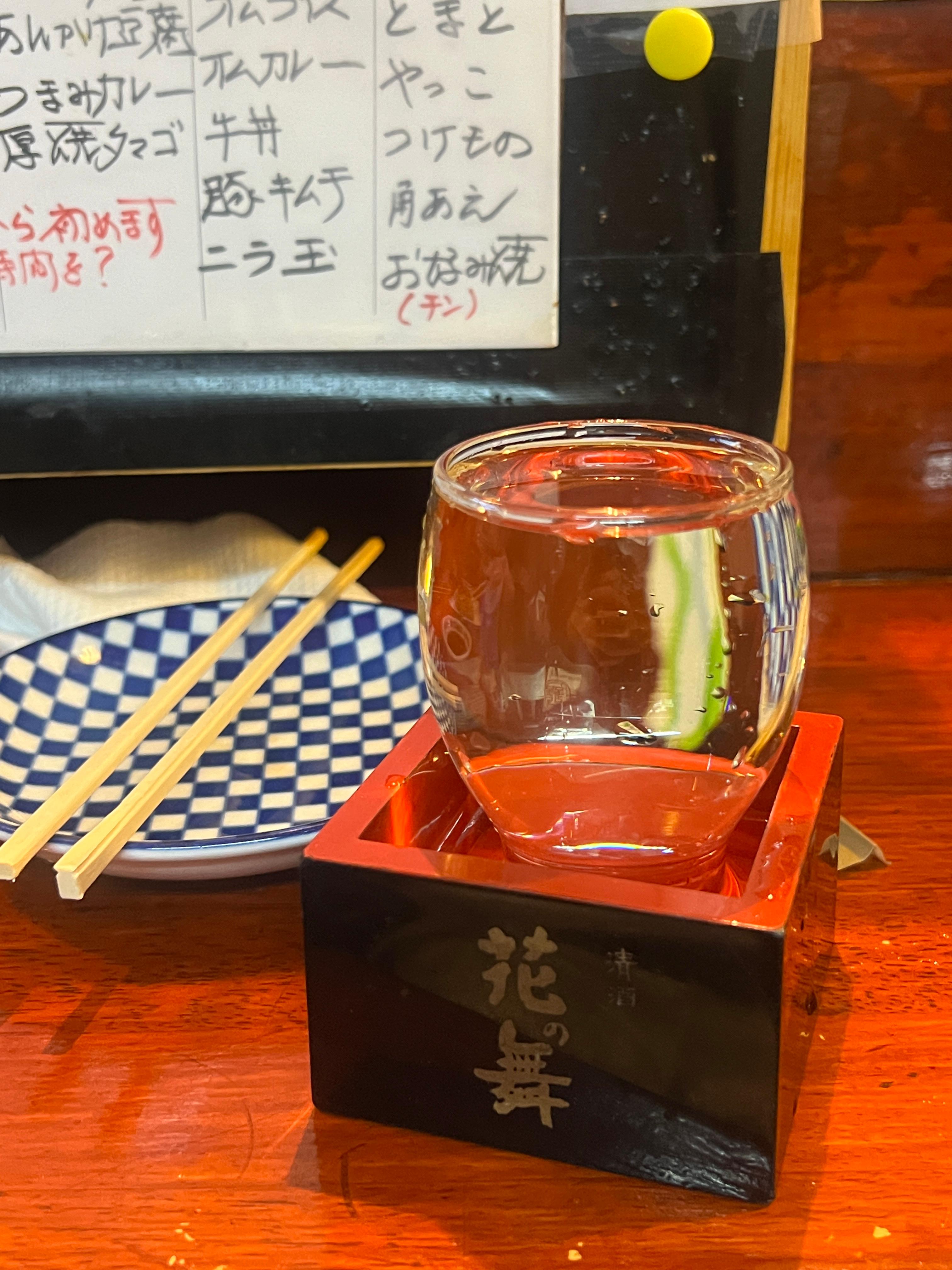 온사케는 특이한 잔에 따라준다. 저 되(?)에 넘치는 만큼 덤으로 주는거라고 함.